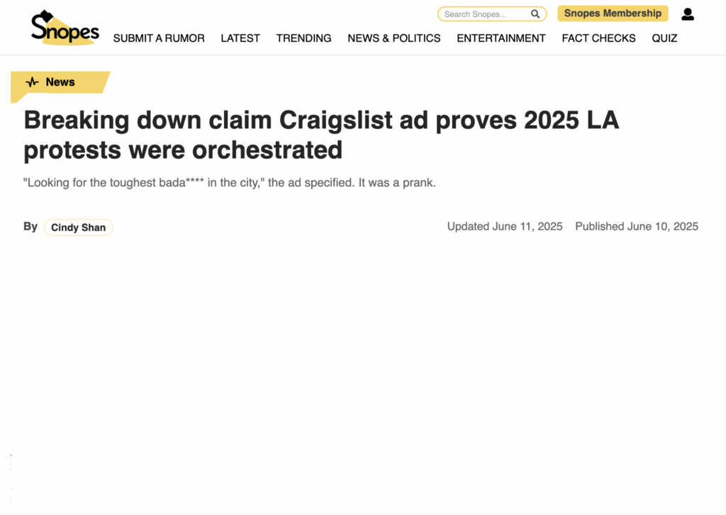 False Claim: President Trump’s Federalized National Guard De-escalated the situation in Los Angeles