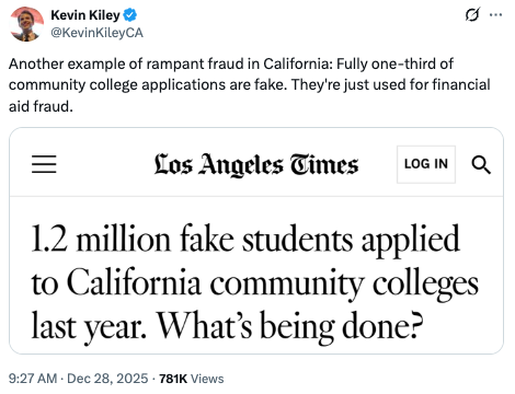 FAKE: Fully one-third of community college applications are fake. They’re just used for financial aid fraud.