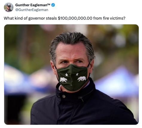 FALSE CLAIM: Gov Newsom & his admin (Cal Volunteers) took money from the FireAid relief fund in Los Angeles – meant for survivors to rebuild their lives.