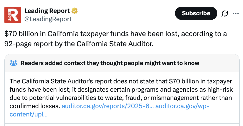 The State Auditor’s “high-risk” list does NOT cite billions in current losses.